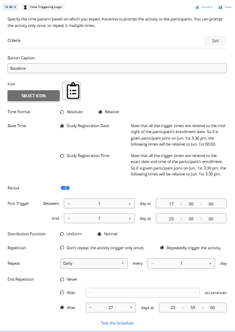 In our study, we use a variable baseline period per participant. Because we only include a small number of participants, we create one study per participant. We therefore set up one study as a blueprint, tested it, and then duplicated this study for each participant.