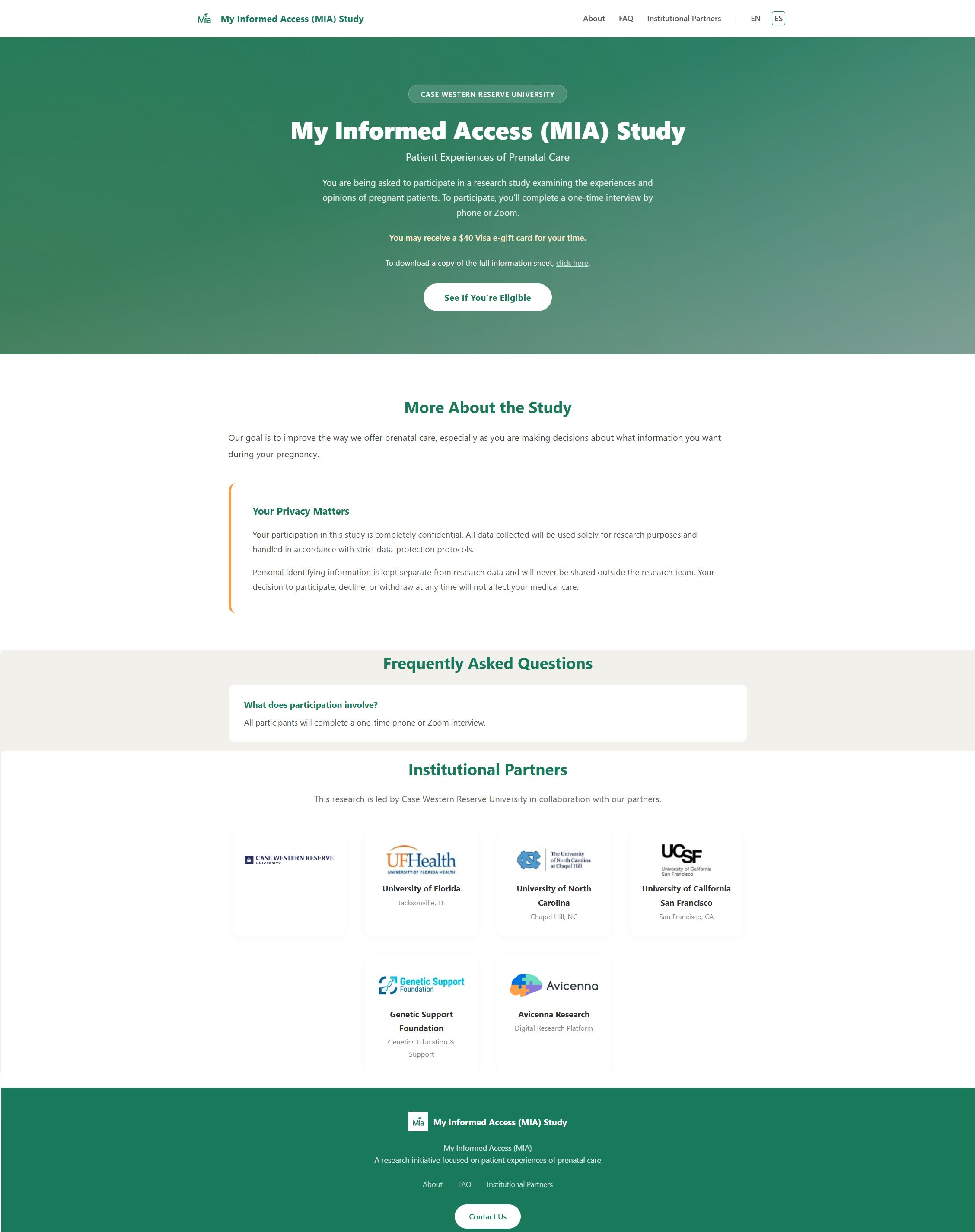 If your study requires a tailored registration experience, Avicenna supports custom registration pages. Instead of the standard registration page, participants visiting your study’s registration URL will see a fully customized HTML page designed specifically for your study.