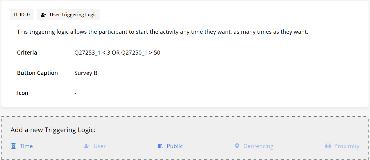 User Triggering Logic. - Click Edit to open the triggering logic editor.